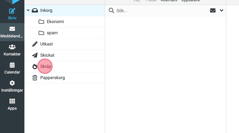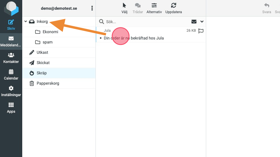Den här guiden visar hur du flyttar ett felaktigt markerat skräppostmeddelande tillbaka till inkorgen i Roundcube webmail.