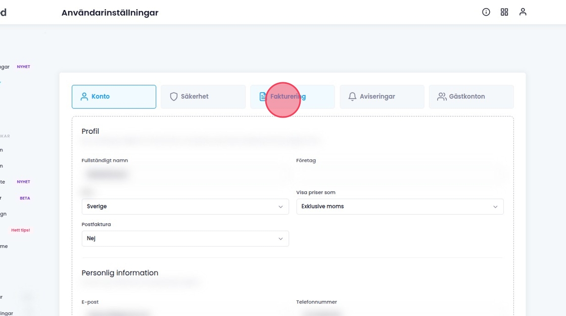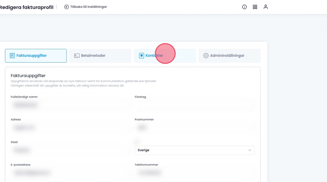6. Klicka på "Kontakter" för att hantera vilka som får faktureringsnotiser.