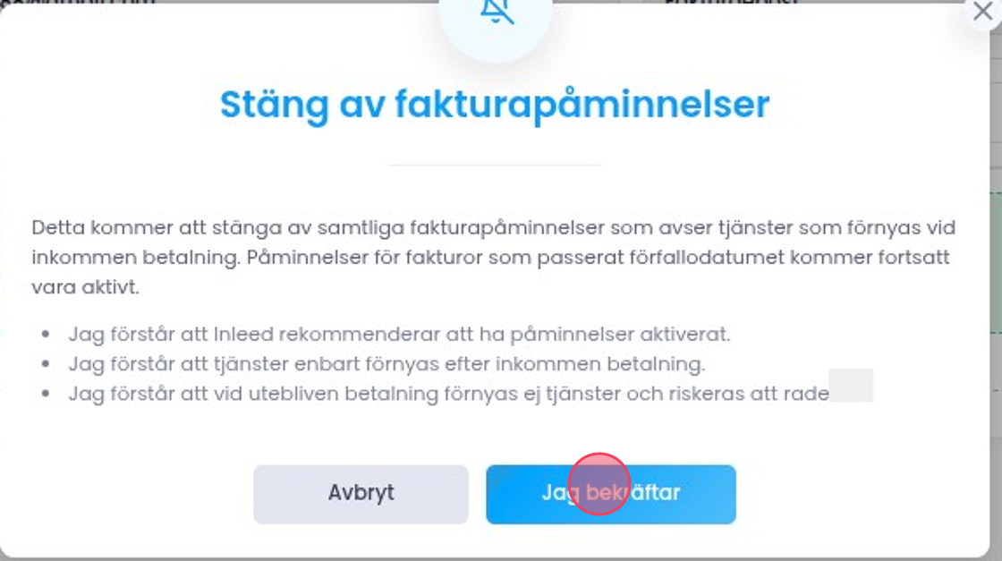 Den här guiden visar hur du hanterar du stänger av alla fakturapåminnelser.