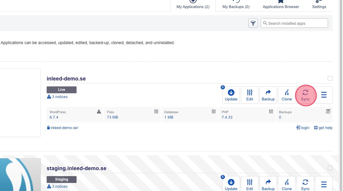 Den här guiden visar hur du synkroniserar en staging-sida till din live-sida med hjälp av Installatron i DirectAdmin.